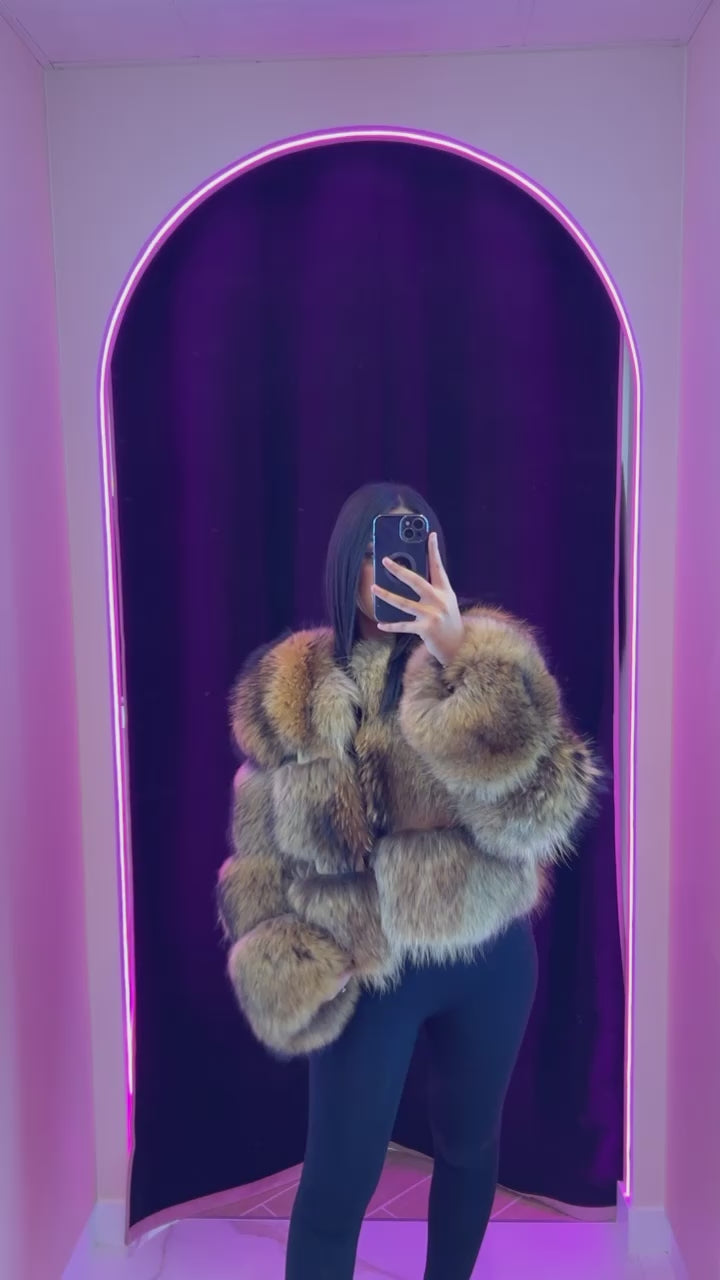 Cette Fourrure Maeva est confectionnée à la commande en véritable cuir et raccon, offrant ainsi une qualité supérieure et une douceur incomparable. Avec son mélange unique de matériaux, cette fourrure vous gardera au chaud et au sec tout en vous donnant un look élégant et luxueux. Commandez dès maintenant pour un ajout de style et de confort à votre garde-robe.